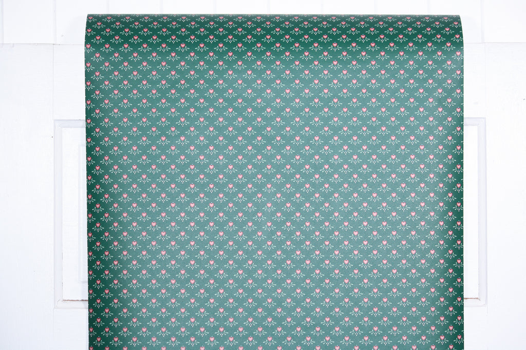 There are approximately 10 yards of wallpaper on this last remaining, great for small projects.